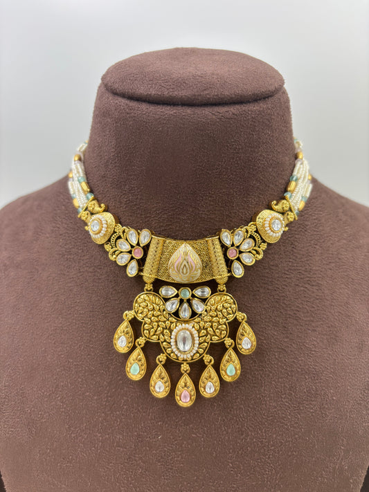 Rumani Multi Drop Kundan Choker Necklace.