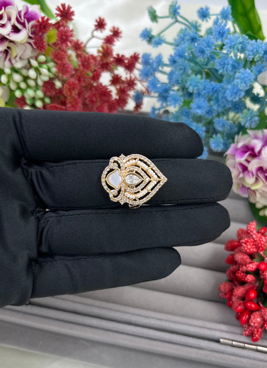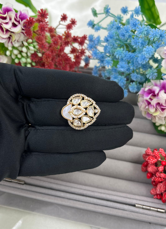 Leena Moissanite Kundan FingerRing