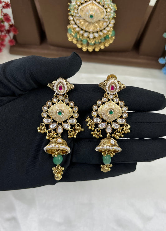 Sold outRajvi Pachi Kundan Combo Set