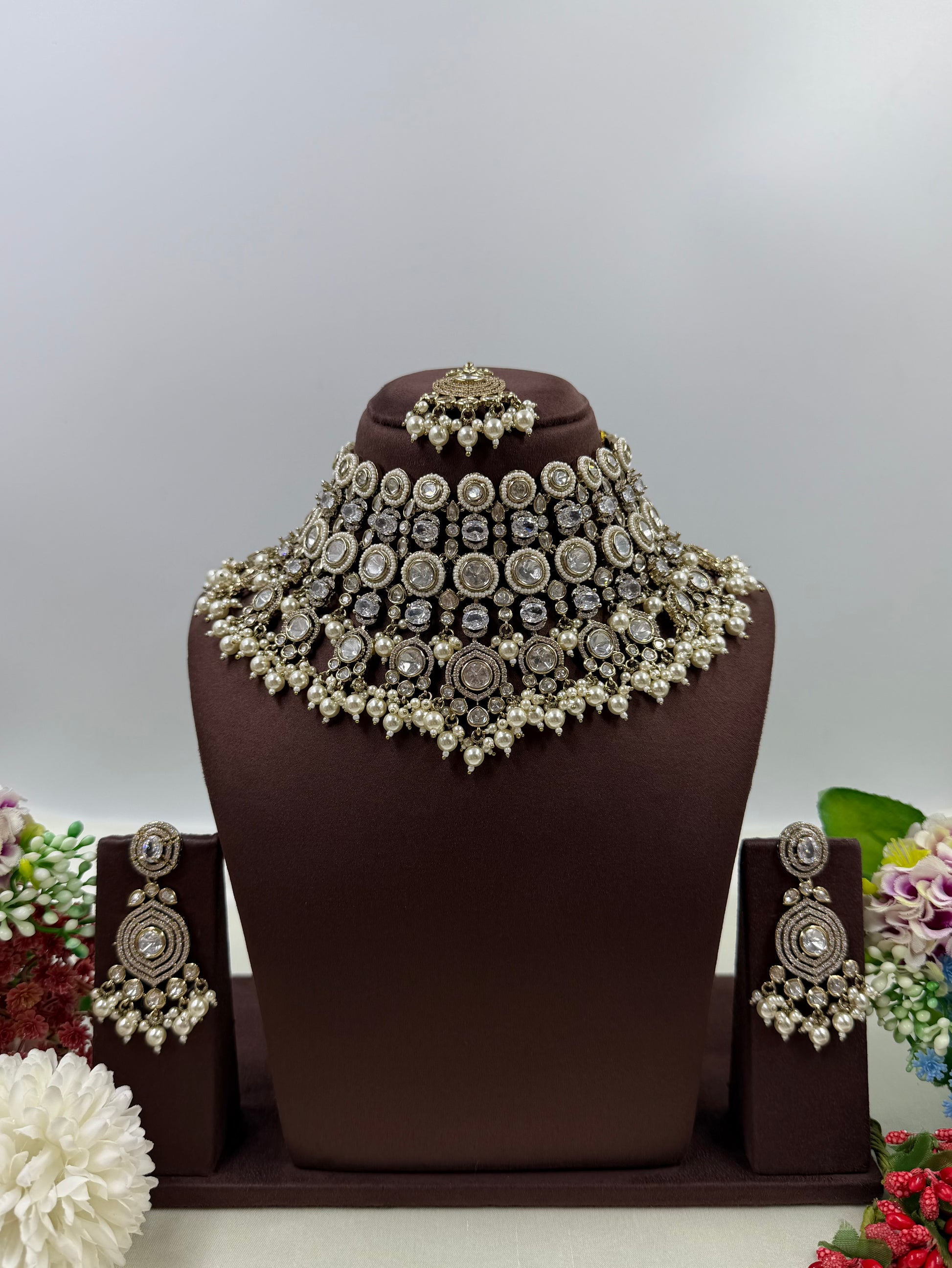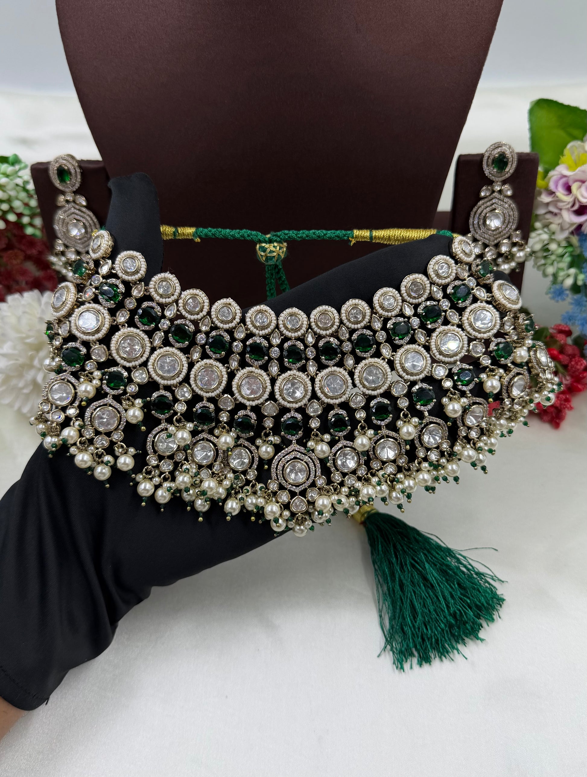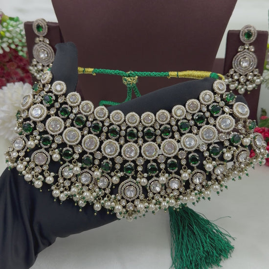 Veenita Victorian Moissanite Choker Necklace Set